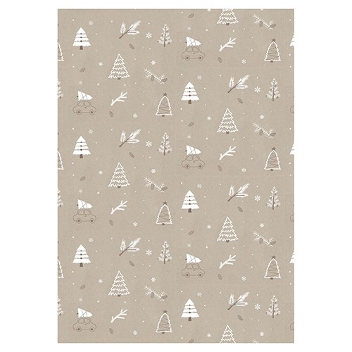 Hübsches naturfarbenes Geschenkpapier mit süßen Tannenbäumchen von Ib Laursen! 5 Meter auf einer Rolle.