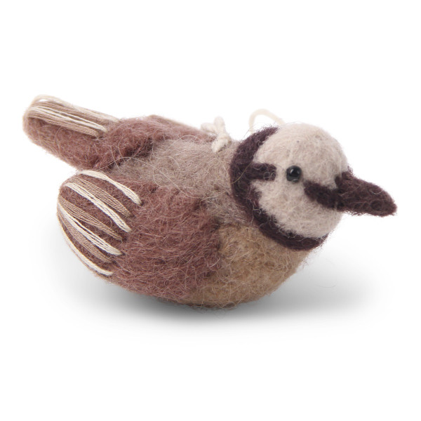 Wie niedlich! Handgearbeiteter Vogel aus Filz zum Anhängen von En Gry & Sif. Voller Leidenschaft in Dänemark entworfen und fairtrade in Nepal produziert. En Gry & Sif unterstützt nepalesische Frauen und steht für gerechte Löhne und Arbeitsbedingungen, umweltverträgliche Produktion und Transparenz. Alle Produkte sind aus reiner neuseeländischer Schurwolle handgemacht, somit ist jedes Teil ein Unikat.