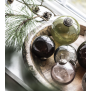 Einzigartige Kugel aus grünem Glas von Ib Laursen. Die dekorative Weihnachtskugel ist handgefertigt und das besondere Aussehen des Glases kommt von einem silbernem Metall, welches in das geschmolzene Glas eingearbeitet ist. Die silberne Metallfolie breitet sich aus und wirkt so wie dekorativ glitzernde Steinstücke im Glas. Dies schafft einzigartige Unebenheiten und jede Weihnachtskugel ist somit ein Unikat.