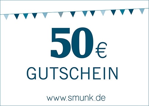 Jeder Gutschein ist nur einmal verwendbar und komplett einzulösen. Dieser Gutschein ist nur in unserem Onlineshop gültig. Sollten Sie Ihn in unserem Ladengeschäft Smunk am Kreuzberg einlösen wollen, bitten wir Sie uns vorher zu kontaktieren, dann können wir den Gutschein umschreiben.