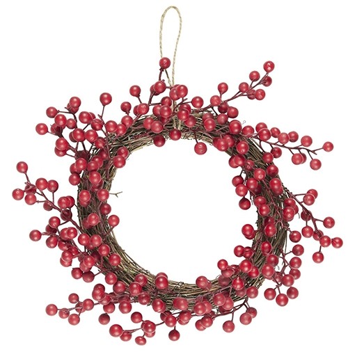 Hübscher Kranz mit roten Beeren von Ib Laursen. Zum stilvollen Dekorieren an der Tür, im Fenster oder an der Wand. Die roten Beeren erinnern an weihnachtliche Ilexzweige. Das Tolle daran, im Frühling und Sommer gut verstaut, erstrahlt der Kranz jedes Jahr aufs neue in seinem tollen Rot zur Herbst und Winterzeit.