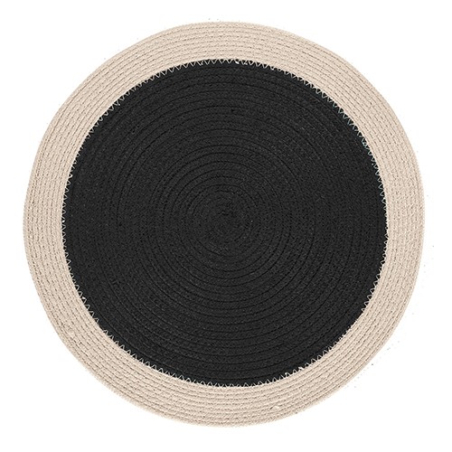 Hübscher, handgearbeiteter Untersetzer aus schwarz- und naturfarbener Jute aus der Serie FORM von Pad.