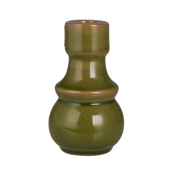 Dekorativer Kerzenhalter aus grüner Keramik von Ib Laursen. Für Haushaltskerzen mit einem Durchmesser von ca 2,2 cm.