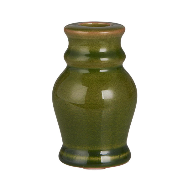 Dekorativer Kerzenhalter aus grüner Keramik von Ib Laursen. Für Haushaltskerzen mit einem Durchmesser von ca 2,2 cm.