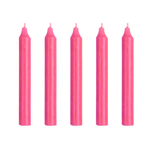 Fünf klassische Kerzen in einem kräftigen Pink.
