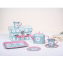 Ein wirklich zauberhaftes Spielset das nicht nur Kinder begeistert. Der süße geblümte Koffer ist gefüllt mit einem süßen Tee Set für 2 Personen! Die nächste Tea party kann kommen! Material - Laminierte Pappe, Metall, Kunststoff