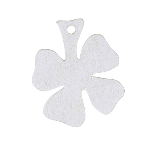 Süßer, kleiner Anhänger in Kleeblattform aus weiß bemaltem Holz. Wunderschön zum Dekorieren, Verzieren und auch als Geschenkanhänger!