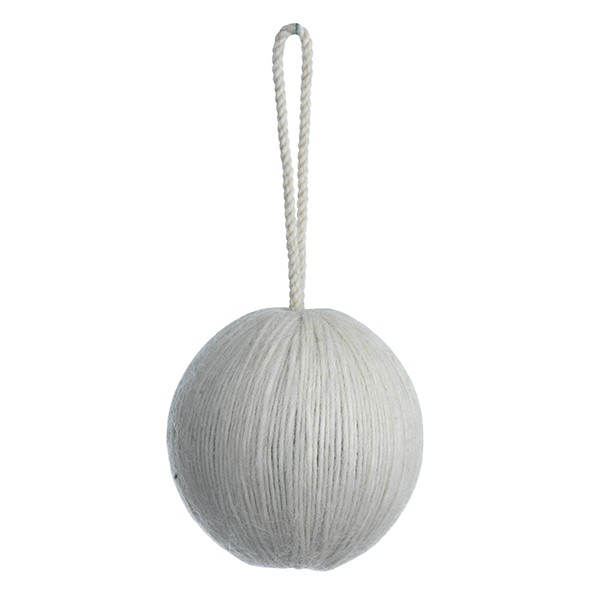 Dekorative Kugel aus cremefarbener Wolle von Madam Stoltz. Mit einem Wollband zum Anhängen.