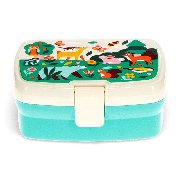 Für ein besonders cooles gutes Kita- oder Schulfrühstück! Praktische Lunchbox mit niedlichen Waldtieren Design aus der Wild Flowers Kollektion von Rex London. Die schicke Box hat ein praktisches Fach welches herausnehmbar ist. Die süße Brotdose ist aus Kunststoff und natürlich BPA-frei. Bei niedrigen Temperaturen spülmaschinengeeignet, aber nicht mikrowellenfest.
