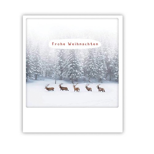 Winterliche Weihnachtskarte mit Rentieren in Vintage Polaroid Optik von Pickmotion.