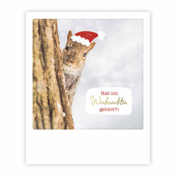 Tolle Weihnachtskarte mit süßem Eichhörnchen in Vintage Polaroid Optik von Pickmotion.