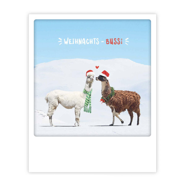 Schmatz! Hübsch gestaltete Weihnachtskarte in Vintage Polaroid Optik von Pickmotion.