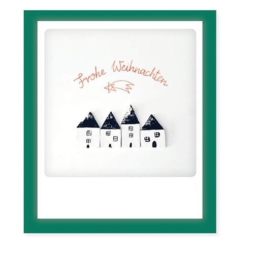 Schicke, grüne Klappkarte für besonders schöne Weihnachtsgrüße in Vintage Polaroid Optik von Pickmotion. Inklusive passendem Umschlag. Besonders toll an dieser KLappkarte: Die Karte mit dem Fotomotiv lässt sich aus dem Passepartout herausnhemen und somit zum Dekorieren, Aufhängen oder nochmals zum Beschriften verwenden. Also doppelte Freude mit den tollen Pickmotion Klappkarten.