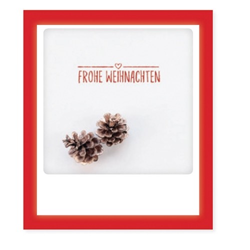 Frohe Weihnachten! Schicke, rote Klappkarte mit schönem Tannenzapfen in Vintage Polaroid Optik von Pickmotion. Inklusive passendem Umschlag.
