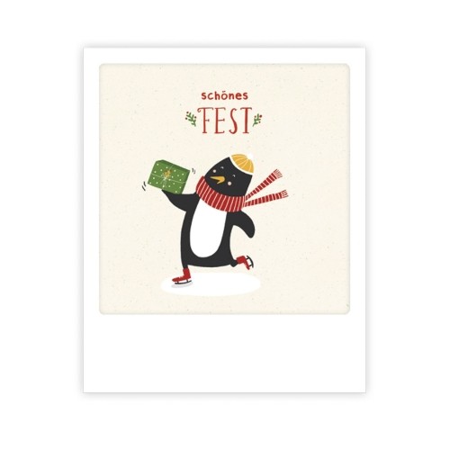 Schönes Fest! Süß gestaltete Karte mit lustigem Pinguinprint in Vintage-Polaroid-Format von Pickmotion.