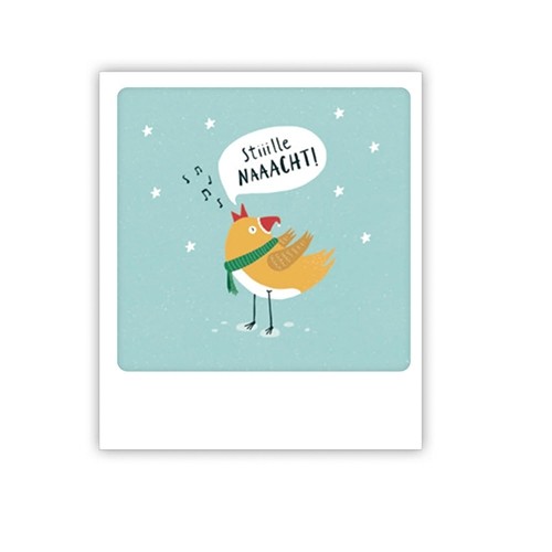 Stiiiiiiille Nacht.....! Süß gestaltete Karte mit einem singenden kleinen Vöglechen in Vintage-Polaroid-Format von Pickmotion.