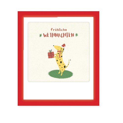 Fröhliche Weihnachten! Süße Mini Pic Weihnachtsklappkarte mit niedlichem Hundemotiv in Vintage-Polaroid-Format von Pickmotion. Besonders toll an dieser Klappkarte: Die Karte mit dem Fotomotiv lässt sich aus dem Passepartout herausnhemen und somit zum Dekorieren, Aufhängen oder nochmals zum Beschriften verwenden. Also doppelte Freude mit den tollen Pickmotion Klappkarten.