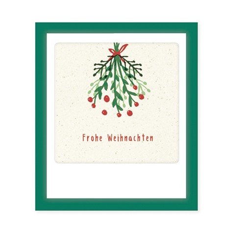 Frohe Weihnachten! Hübsche Mini Pic Klappkarte mit weihnachtlichem Mistelzweig Motiv in Vintage-Polaroid-Format von Pickmotion. Besonders toll an dieser Klappkarte: Die Karte mit dem Fotomotiv lässt sich aus dem Passepartout herausnhemen und somit zum Dekorieren, Aufhängen oder nochmals zum Beschriften verwenden. Also doppelte Freude mit den tollen Pickmotion Klappkarten.