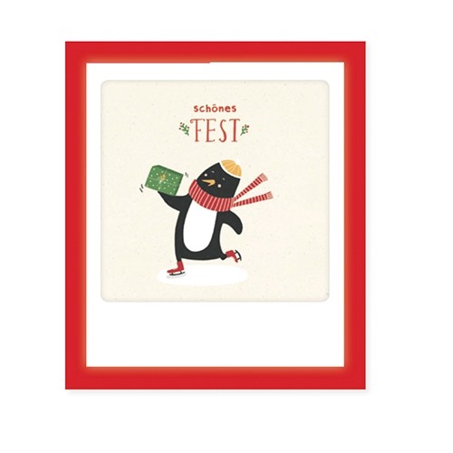 Schönes Fest! Originelle Mini Pic Weihnachtsklappkarte mit niedlichem Pinguin in Vintage-Polaroid-Format von Pickmotion. Besonders toll an dieser Klappkarte: Die Karte mit dem Fotomotiv lässt sich aus dem Passepartout herausnhemen und somit zum Dekorieren, Aufhängen oder nochmals zum Beschriften verwenden. Also doppelte Freude mit den tollen Pickmotion Klappkarten.