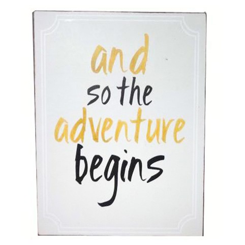 And so the adventure begins! Dekoratives Schild für Abendteurer und die, die noch werden wollen. Im Vintage Retro Look von La Finesse. Mit 2 Hängevorrichtungen zum eventuellen Befestigen an der Wand. Hier gibt es weitere Schilder in unserem Shop zu entdecken.