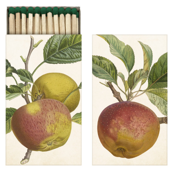 Lange Streichhölzer in einer hübschen Streicholzschachtel mit wunderschöner Apfelillustration in Vintage Optik von Sköna Ting aus Schweden! Die Motive befinden sich auf der Vorder- und Rückseite der Schachtel.