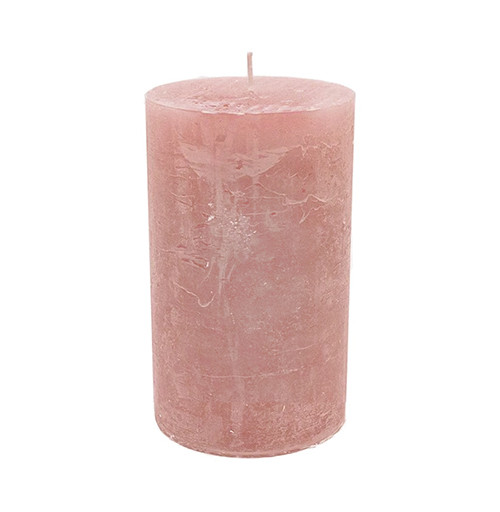 Hochwertige Rustik Stumpenkerze in einem wunderschönen Altrosa Farbton. Natürlich durchgefärbt. Brenndauer 120 Stunden.